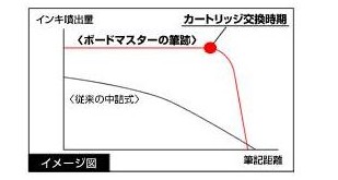 パイロット“ボードマスター”は新開発TPFシステムの採用により、ペン先への安定したインキコントロールを実現しました。ボード板への筆記を続けても、途中でかすれたりせずに常に濃く、くっきりと書くことができます。ホワイトボードはもちろん、電子ボード(OAボード)にも最適です。